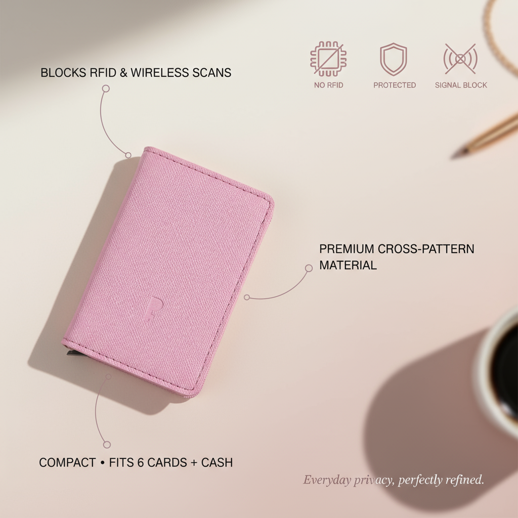 Crafted from premium cross-pattern material, it balances sophistication with function, proving that true security can also be beautifully designed. Carry confidence, carry privacy every day.